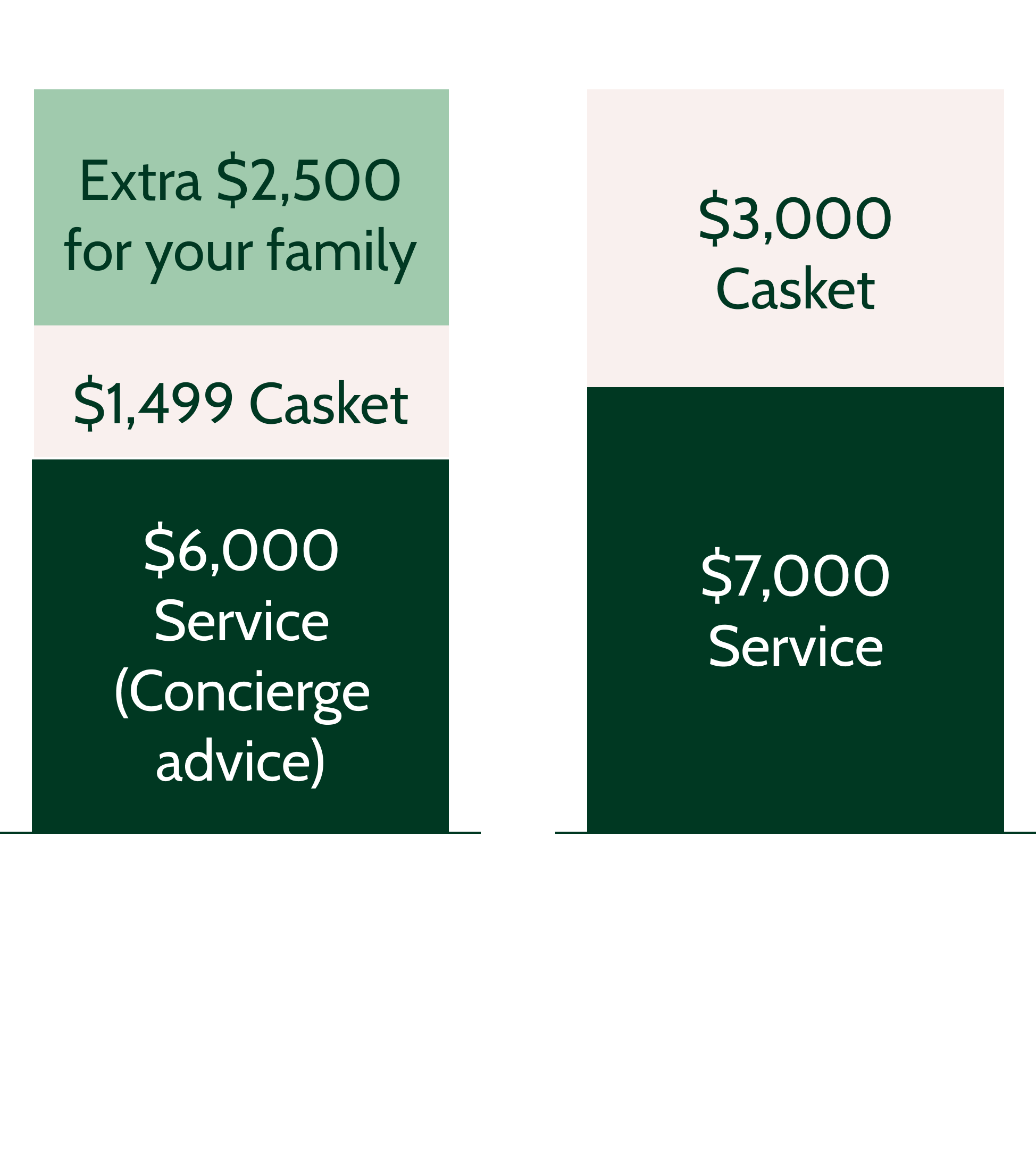 Titan 360 combines funeral insurance, locked-in discounted casket or urn pricing, 24/7 funeral concierge guidance, and a suite of bundled planning tools—all in a single policy.